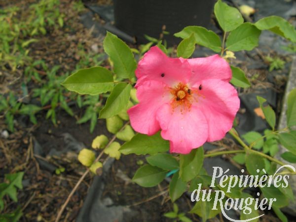 - " Roville aux chênes " : développement 5 à 6 m, fleur 8 cm, rose vif plus clair au centre de la fleur, simple, très florifère et remontant