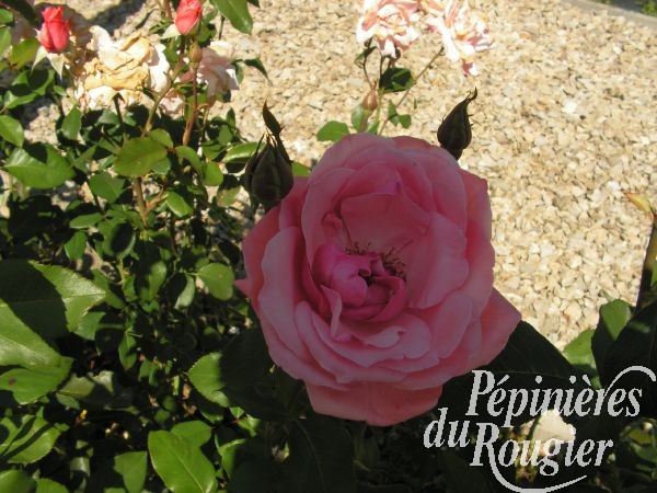 - " centenaire de Lourdes " : hauteur 80 à 120 cm, fleurs de 8 cm, rose clair et blanc au centre, remontant