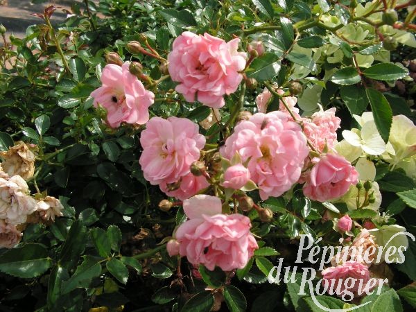 3.3 Rosier polyantha : petites fleurs groupées en bouquets - " distinction " : hauteur 50 cm, fleurs rose clair, bonne remontée à fleurs