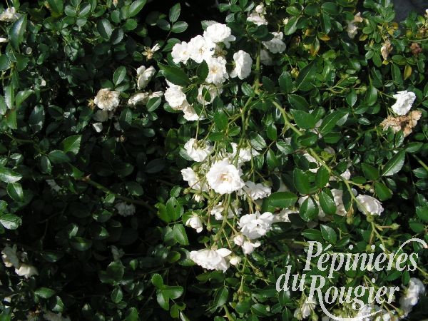 - " iceberg " : développement 3 à 4 m, mutation du rosier floribunda, fleur 8 cm, blanche, double, très florifère et remontant, supporte la mi-ombre